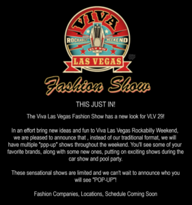 For more information regarding The Viva Las Vegas Fashion Show or how you can become a sponsor, please contact robbyn@vivalasvegas.net